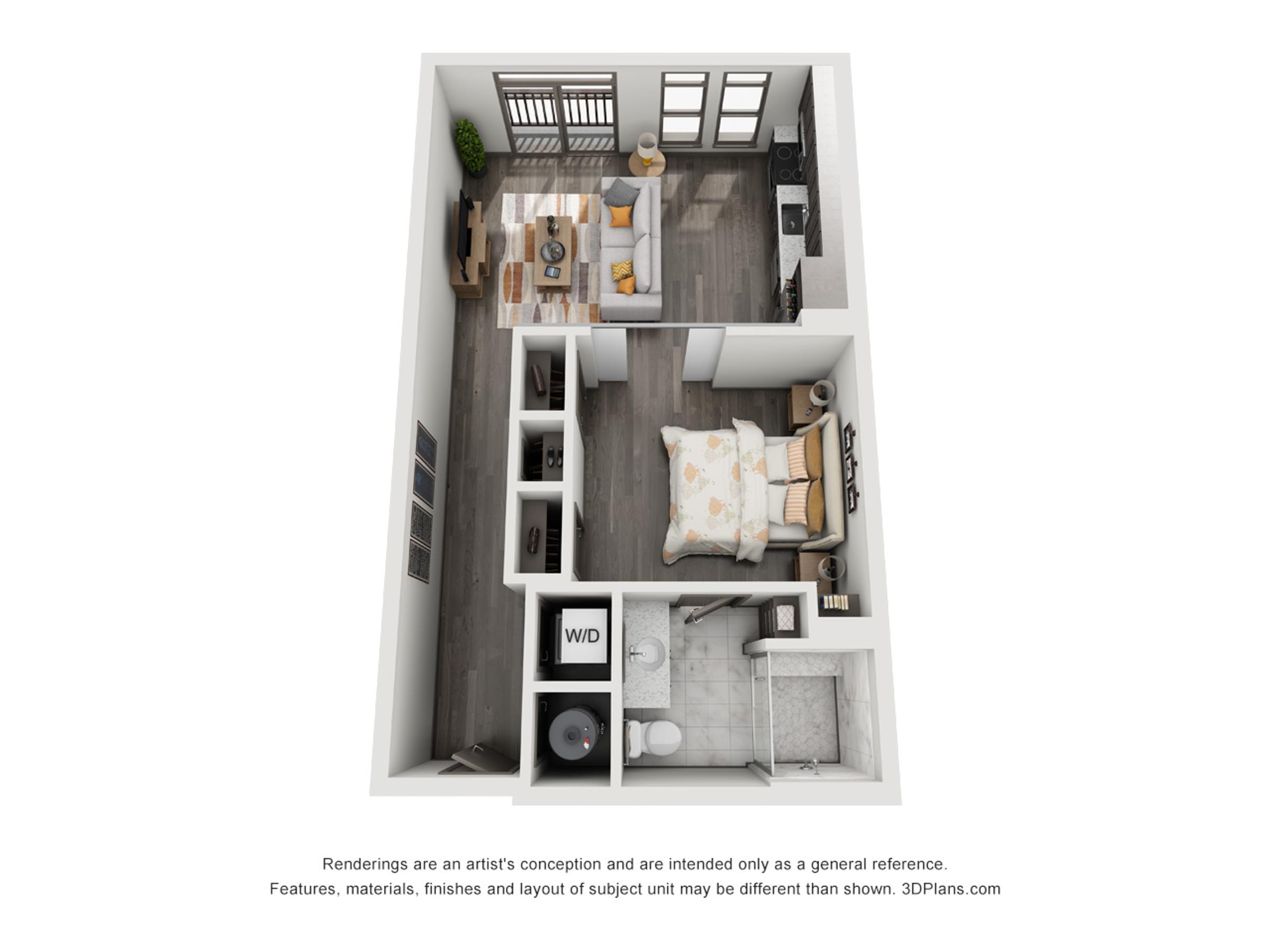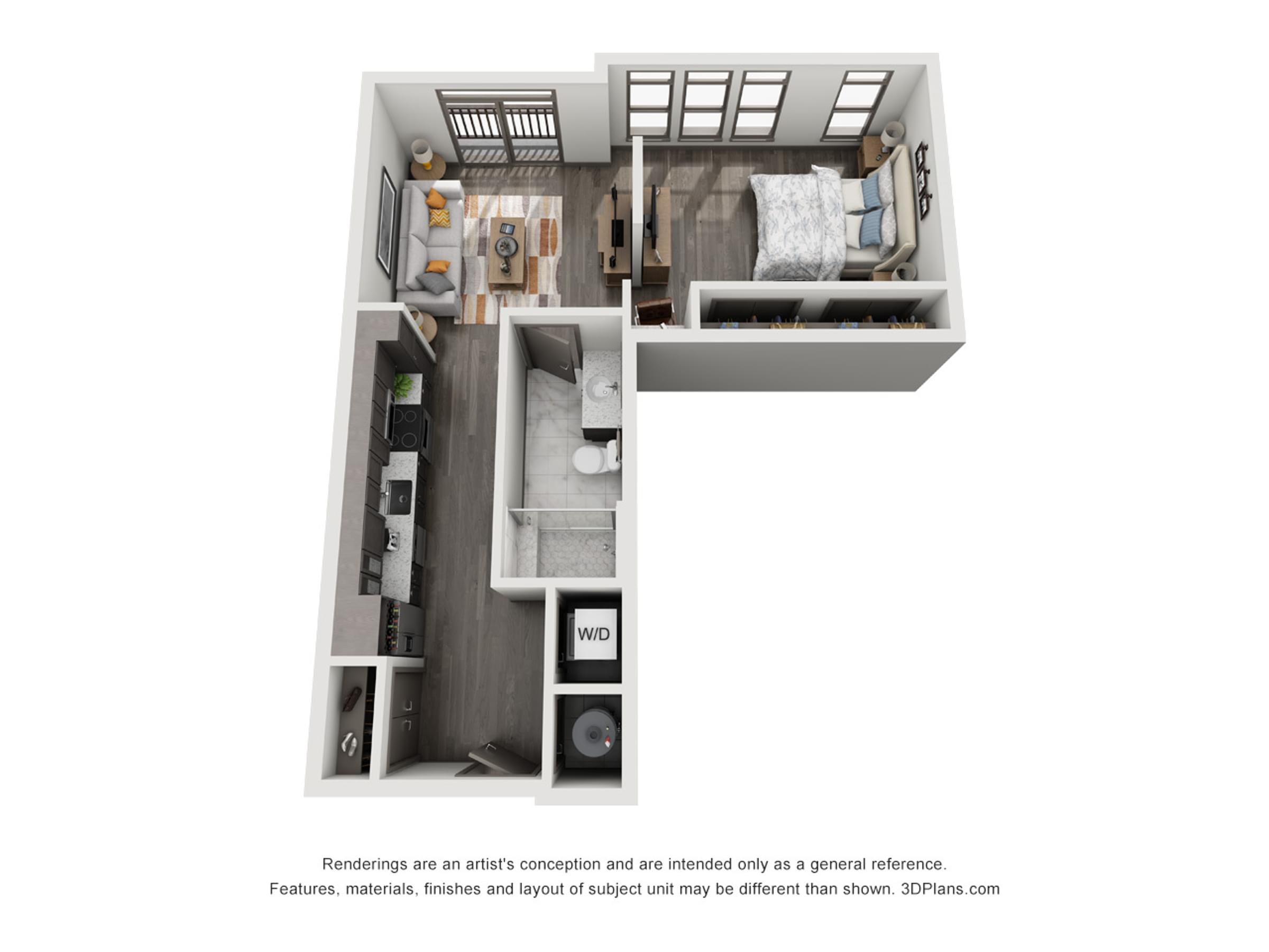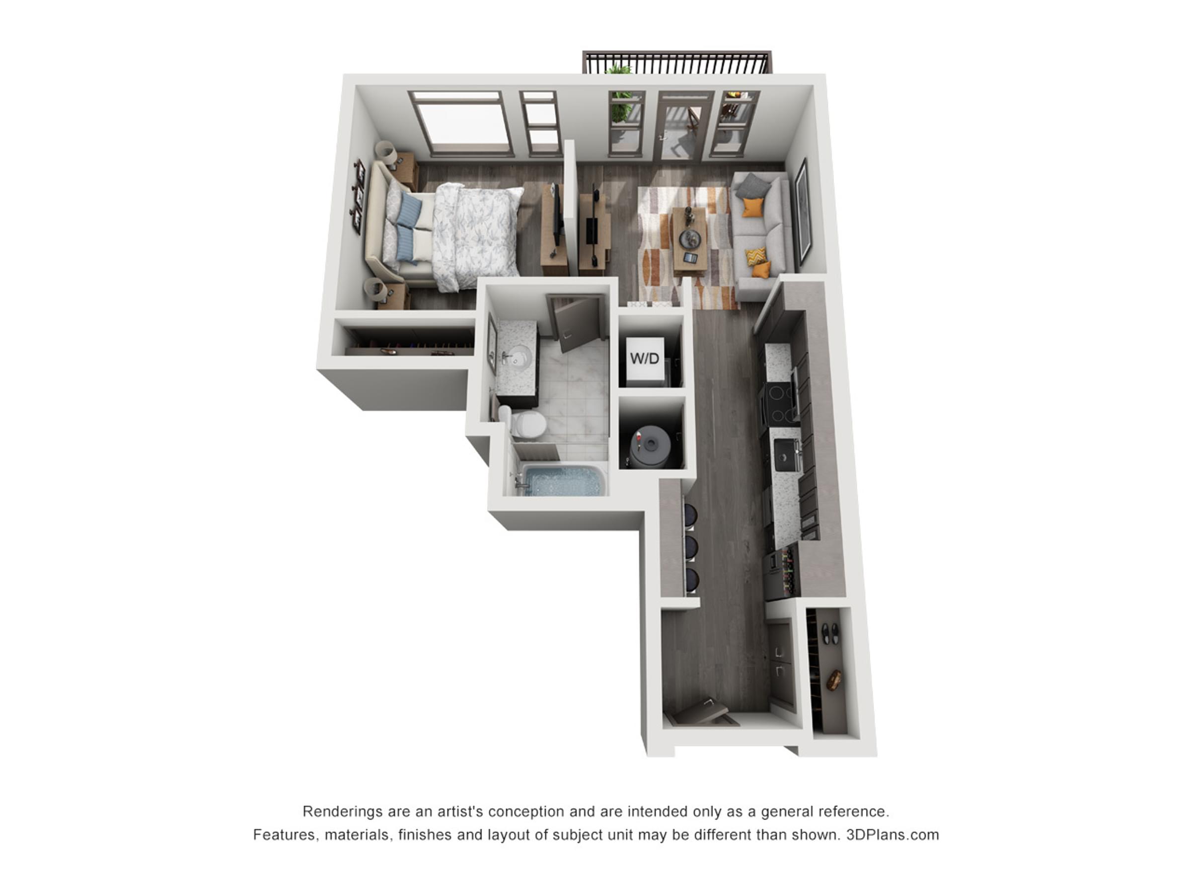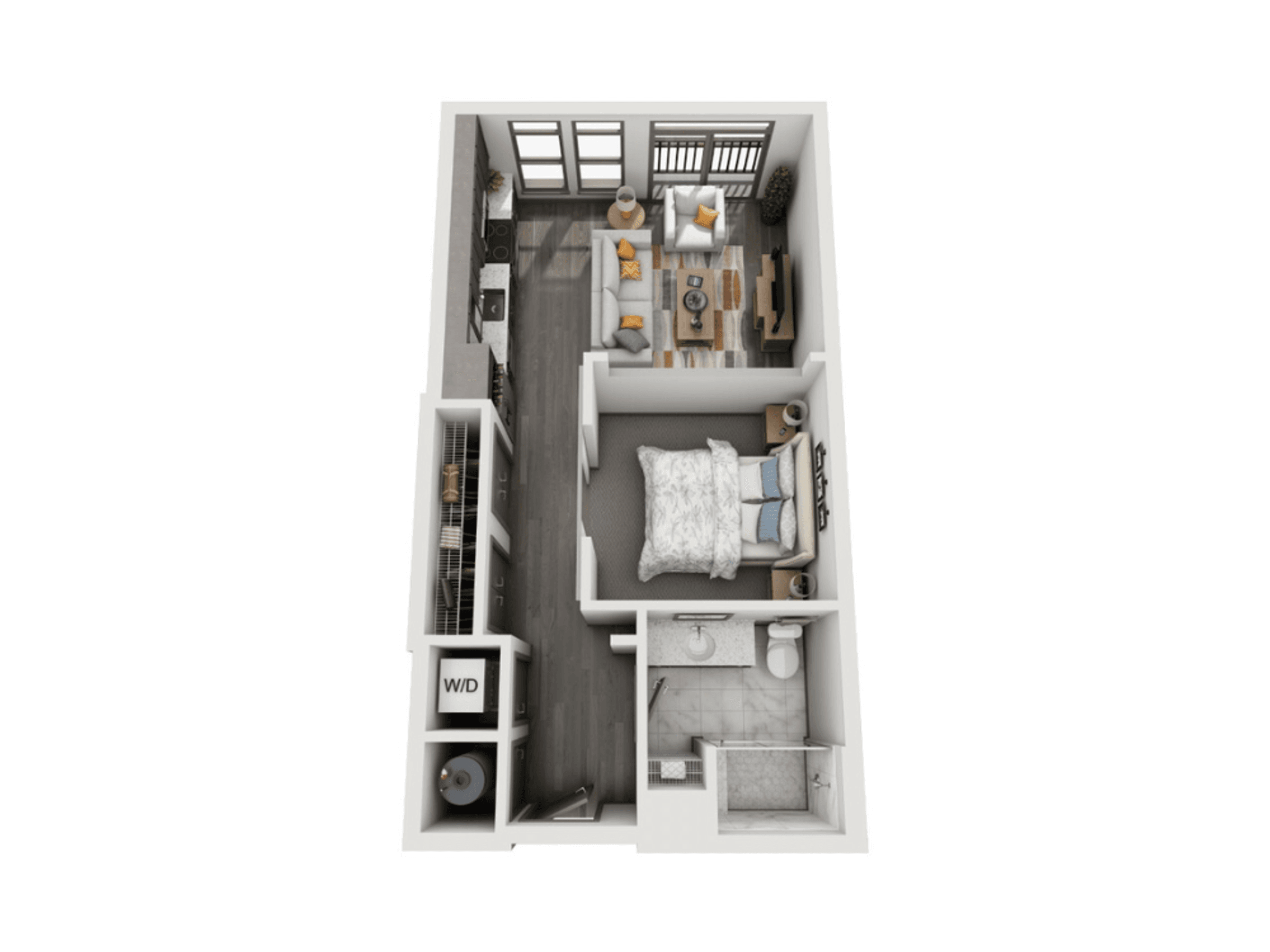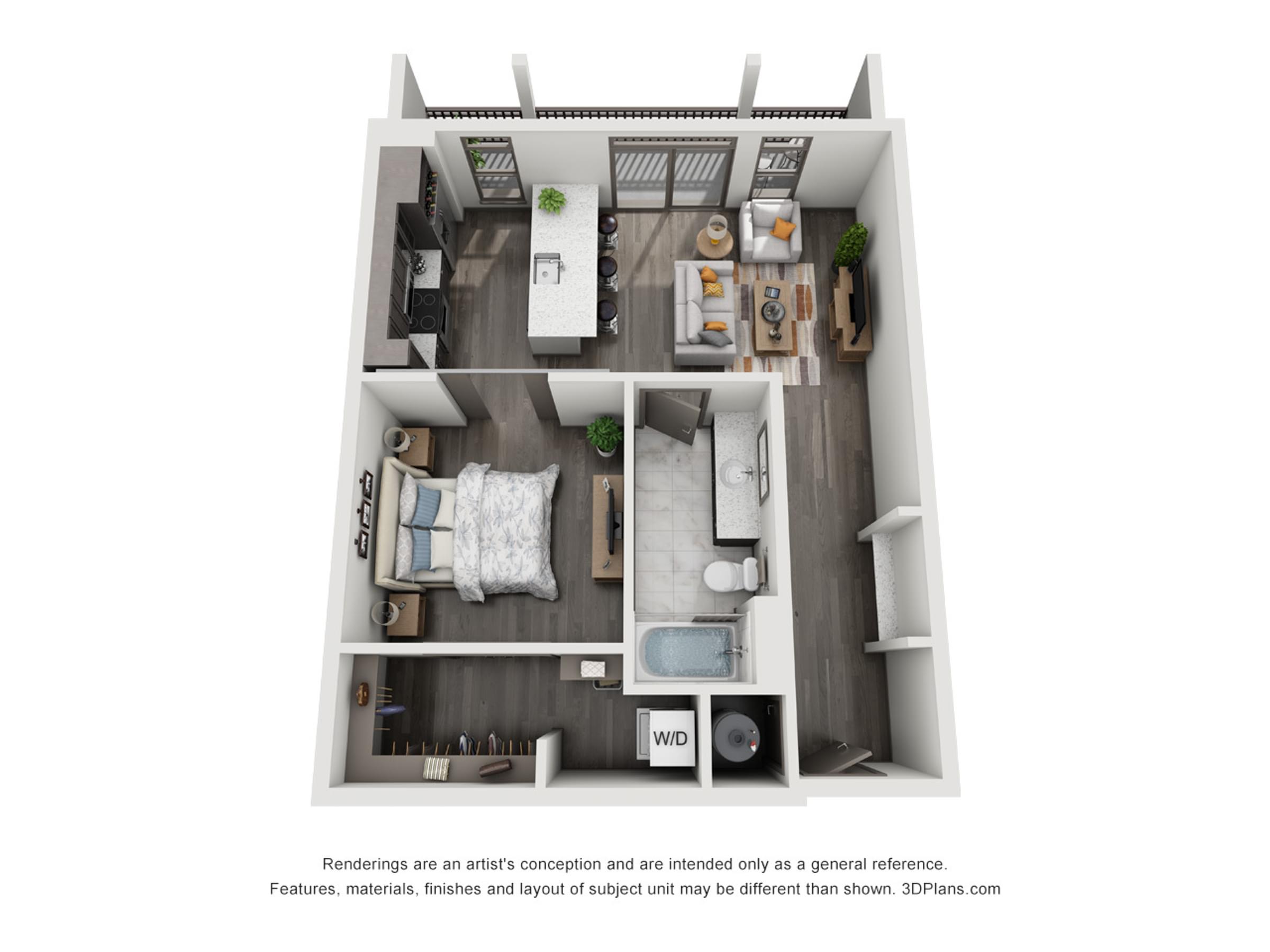 Select from studio to three-bedroom layouts, designed for modern living. Each plan features luxury finishes and thoughtful details.